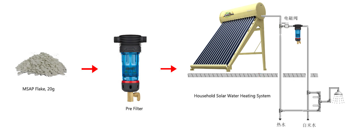 If you increase a scale inhibition filter unit which contains MSAP material on the water inlet of electric heater, this problem will be solved. According to different capacity of filter unit, 30ton~60ton water can be purified and used for electric heater for half to one year.
