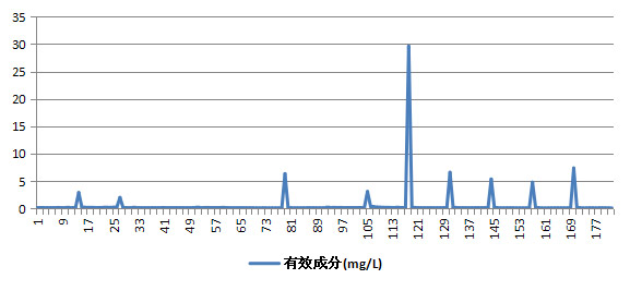 (測(cè)試 系統(tǒng)流量調(diào)到10-12L/分鐘,然后每80L取水樣一次進(jìn)行檢測(cè),連續(xù)14天共處理14噸水樣)